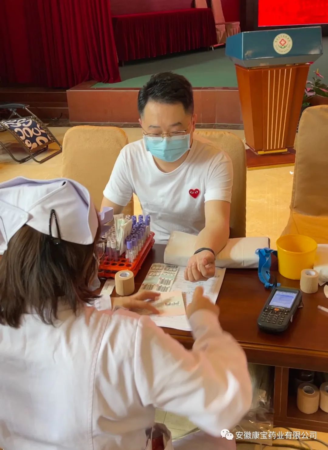 6月12日上午,淮南東方醫院集團在總院多功能廳開展無償獻血活動。康寶藥業積極響應,積極參與。